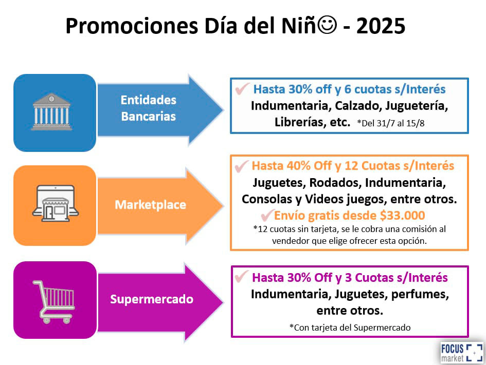 “El Día del Niño es una de las fechas clave del segundo semestre para el retail, con impacto en juguetes, indumentaria y tecnología. Además, funciona como termómetro del ánimo del consumidor en un contexto económico complejo”, explicó Damián Di Pace, director de Focus Market.
