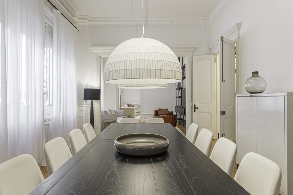 La cuidadosa selección del mobiliario fue clave para aportar fluidez, sofisticación y una estética contemporánea respetando la arquitectura de impronta francesa. El comedor, de generosas proporciones, y el living, con una escala interesante, se destacan no solo por su amplitud, sino por su integración orgánica con el resto del espacio, generando una circulación fluida y coherente. Se preservaron elementos arquitectónicos originales, como la chimenea, aportando carácter y memoria al conjunto. La elección de muebles, materiales y texturas contribuyó a crear una atmósfera cálida y refinada, donde lo clásico y lo moderno conviven en perfecta sintonía.