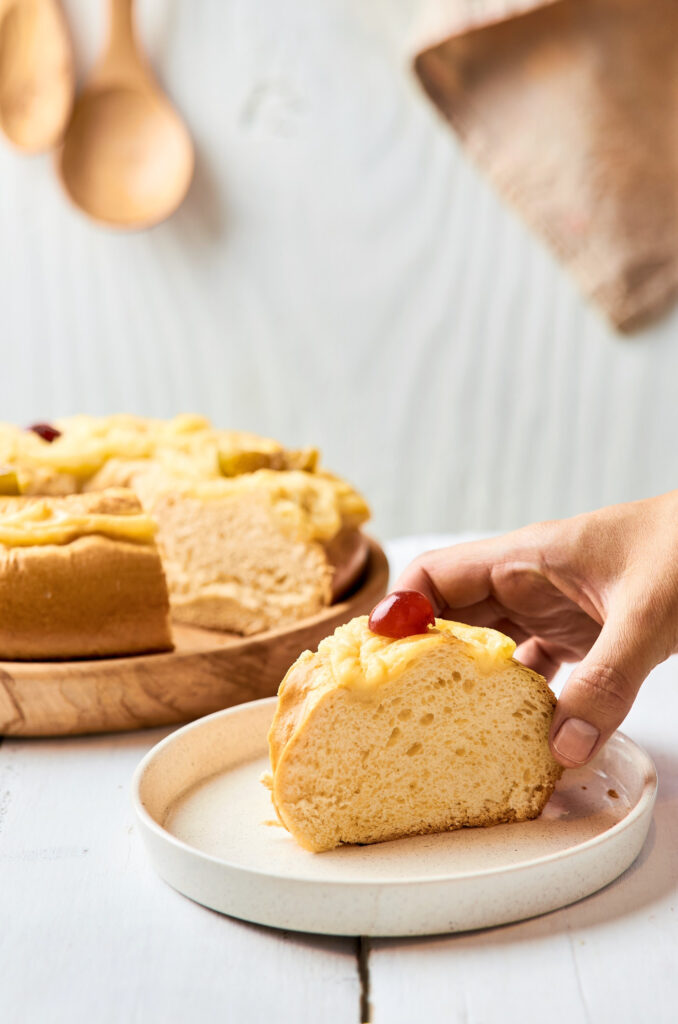 La terminación es uno de los grandes diferenciales de esta elaboración. Cada rosca se decora con crema pastelera de producción propia, preparada diariamente, y se completa con cerezas e higos , logrando un acabado clásico, vistoso y tentador que remite a las recetas tradicionales de panadería.